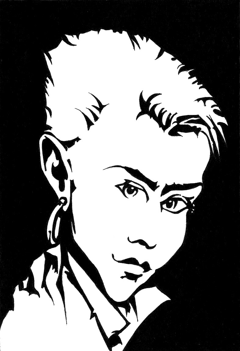 Portrait Painting / Drawing Technique: The Portrait Drawing of Leslie Ash is done in a kind of 2000AD Comic Strip style. First the outline of Leslie Ash's face and facial details were carefully drawn with a very fine Rotring Technical Drawing Pen then a sharply pointed Sable Paint Brush was used to fill in the dark areas with black Rotring Drawing Ink. The Paper used is a light-weight Cartridge Drawing Paper.